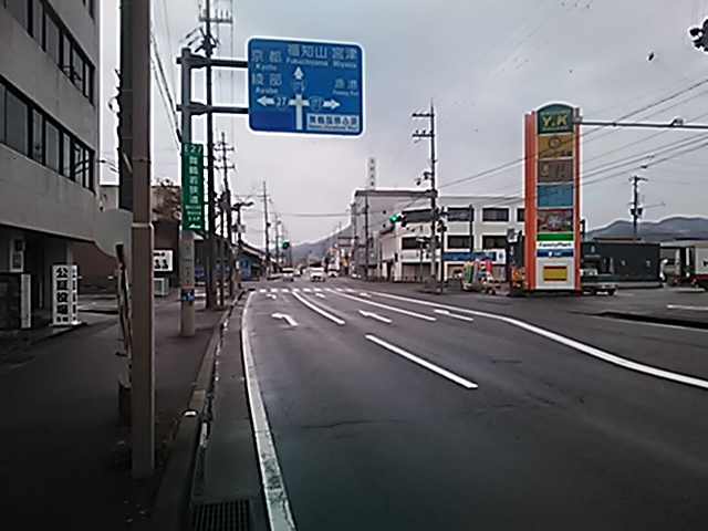 (R07/09/14 13:20:14 京都府京丹波町) 国道27号終点、蒲生交差点。 午前中は雨でしたが、午後は猛暑です。 これから園部駅へ向かいます。 (