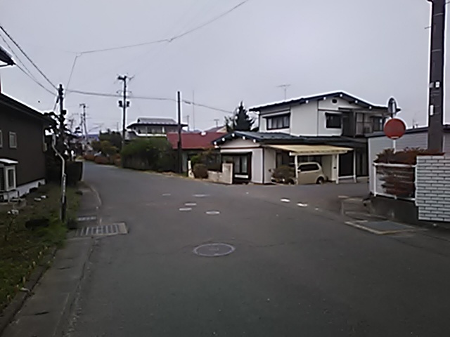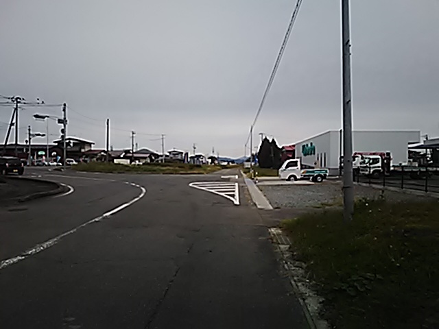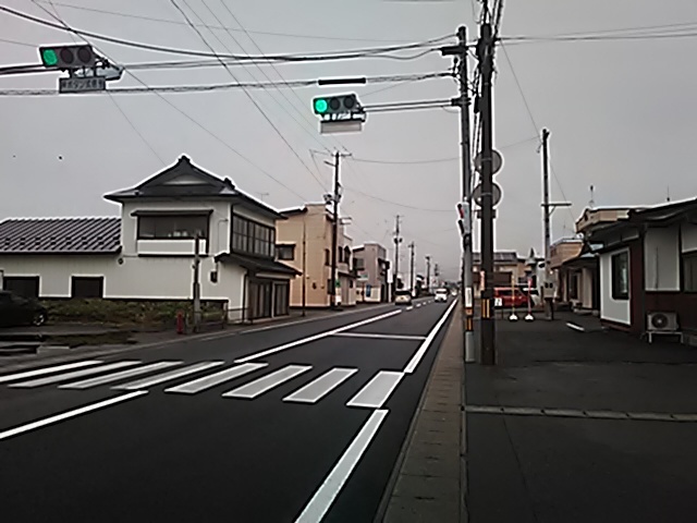(R07/06/01 10:46:02 石鳥谷(陸中)) このあたりが石鳥谷宿中心部です。 石鳥谷では先週、クマが出たとのことで、ラジオを鳴らしながらびくびくして歩きましたが、見てのとおり、クマなんて居そうにない市街地です。 日が出てきました。 (