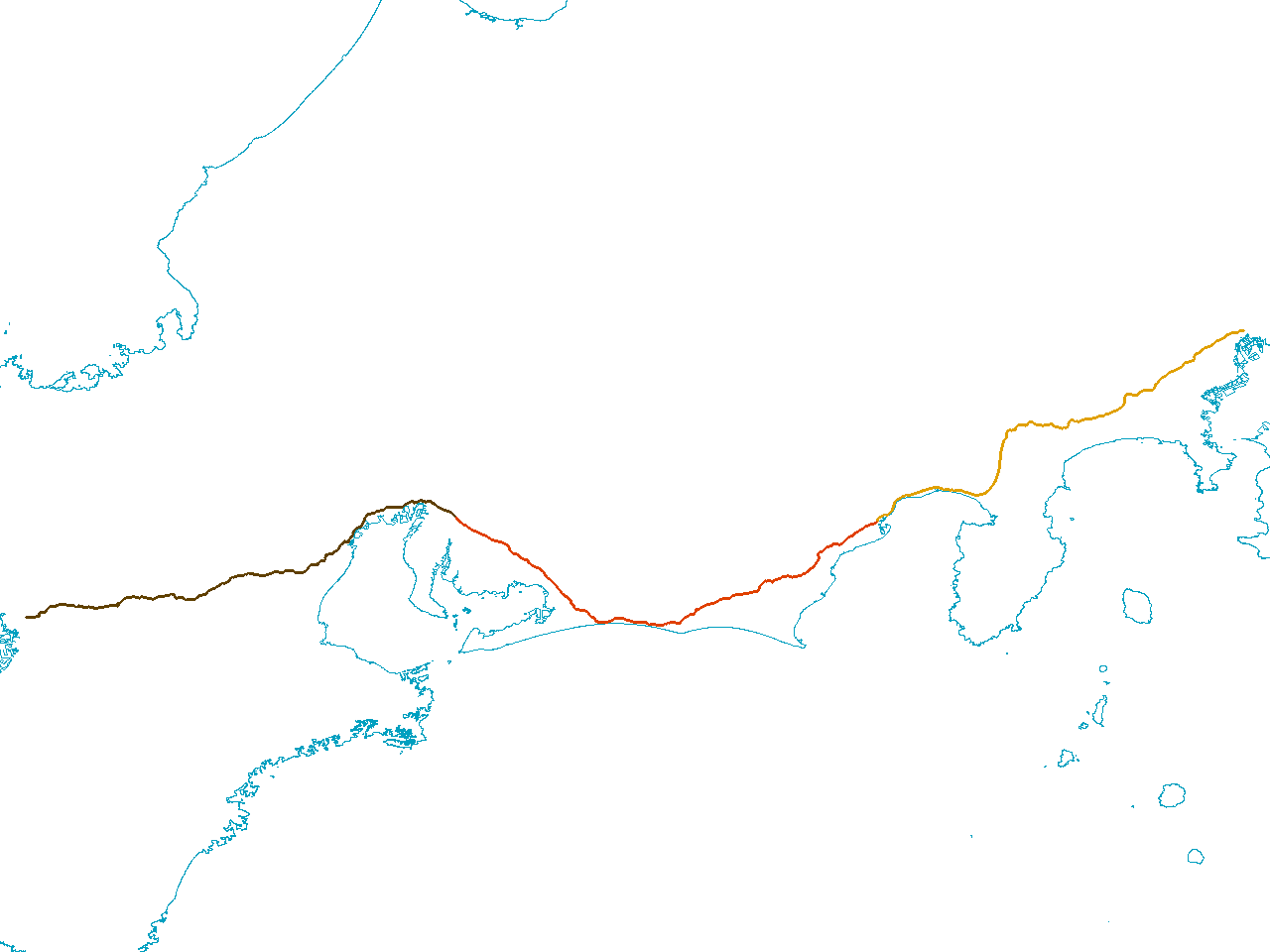 8時31分到着。運が悪いことに高校生くらいのガキの集団が現れ、レジに並んだため、なかなかレジが進まない。休憩が終わって出発したのは8時44分。渡るための信号待ち、戻る時間も考えると20分以上浪費してしまった。それでも計画より55分早い。